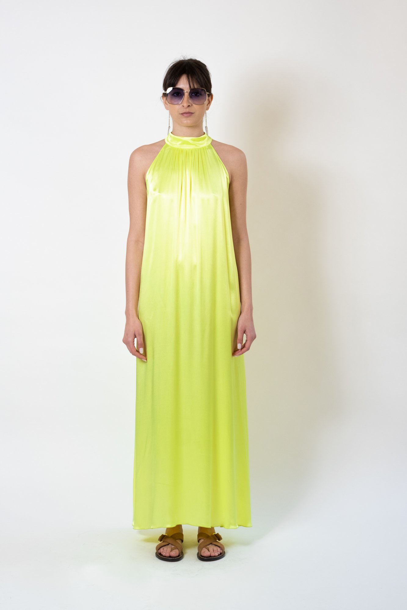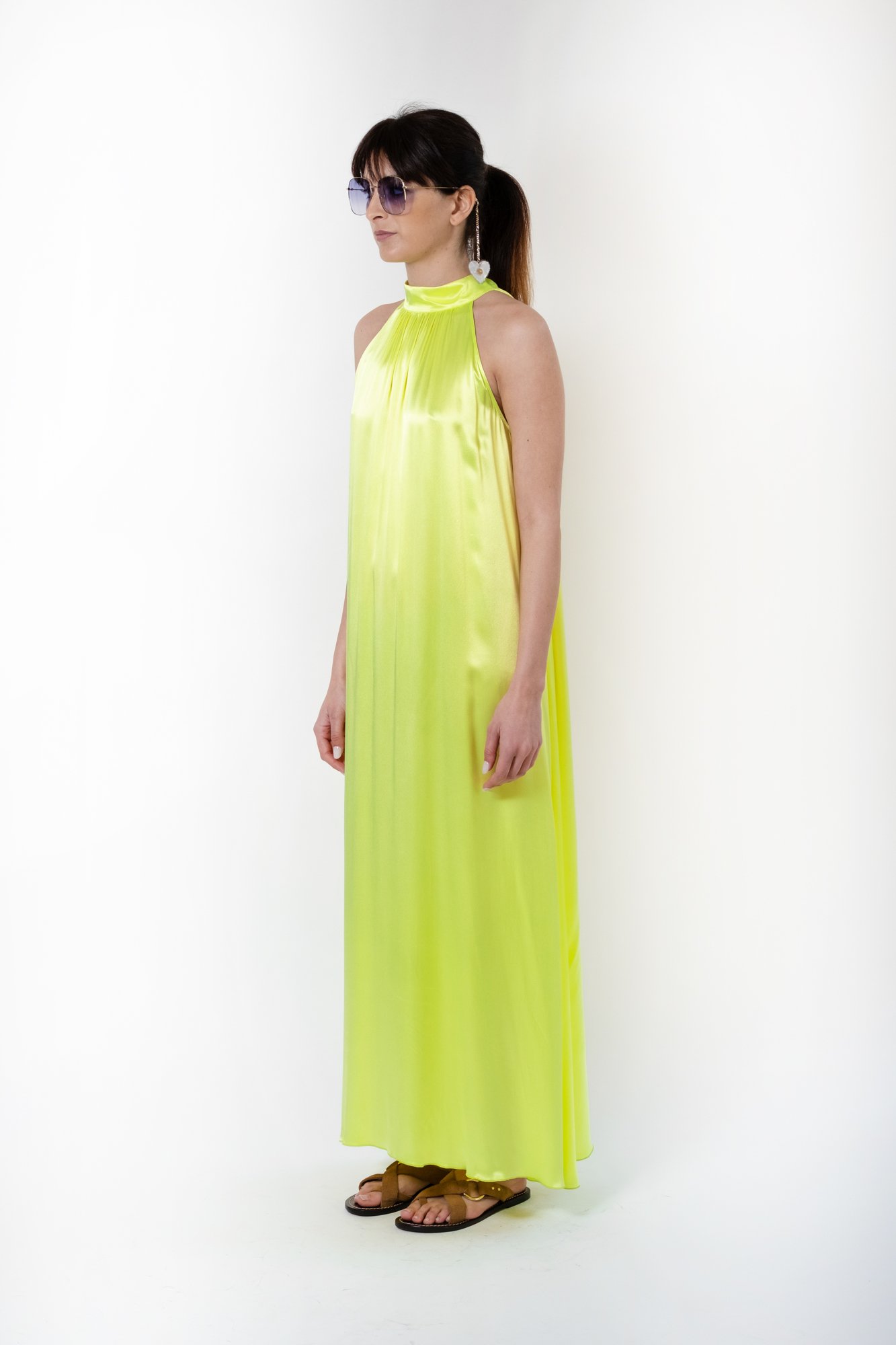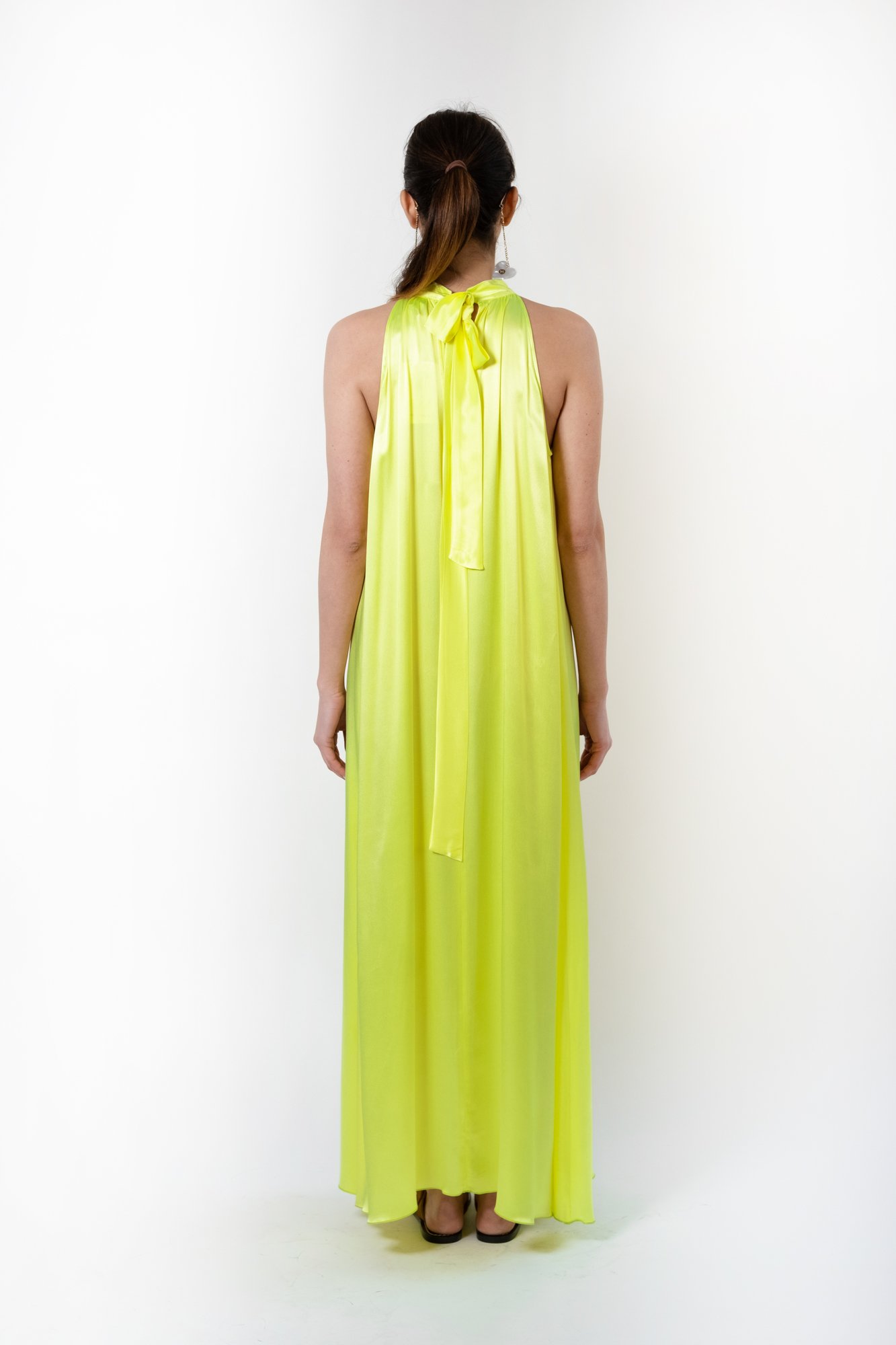 Abito ORTIGIA lungo, spalla americana con fiocco dietro, in raso