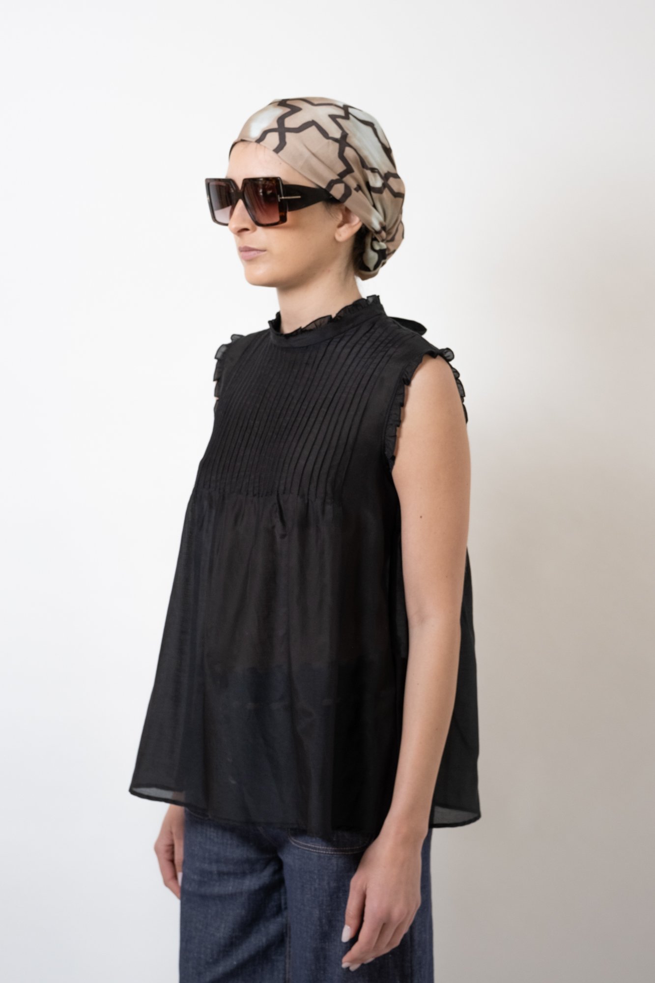 Top ETOSHA in voile di cotone con nervature e rouches allo scollo