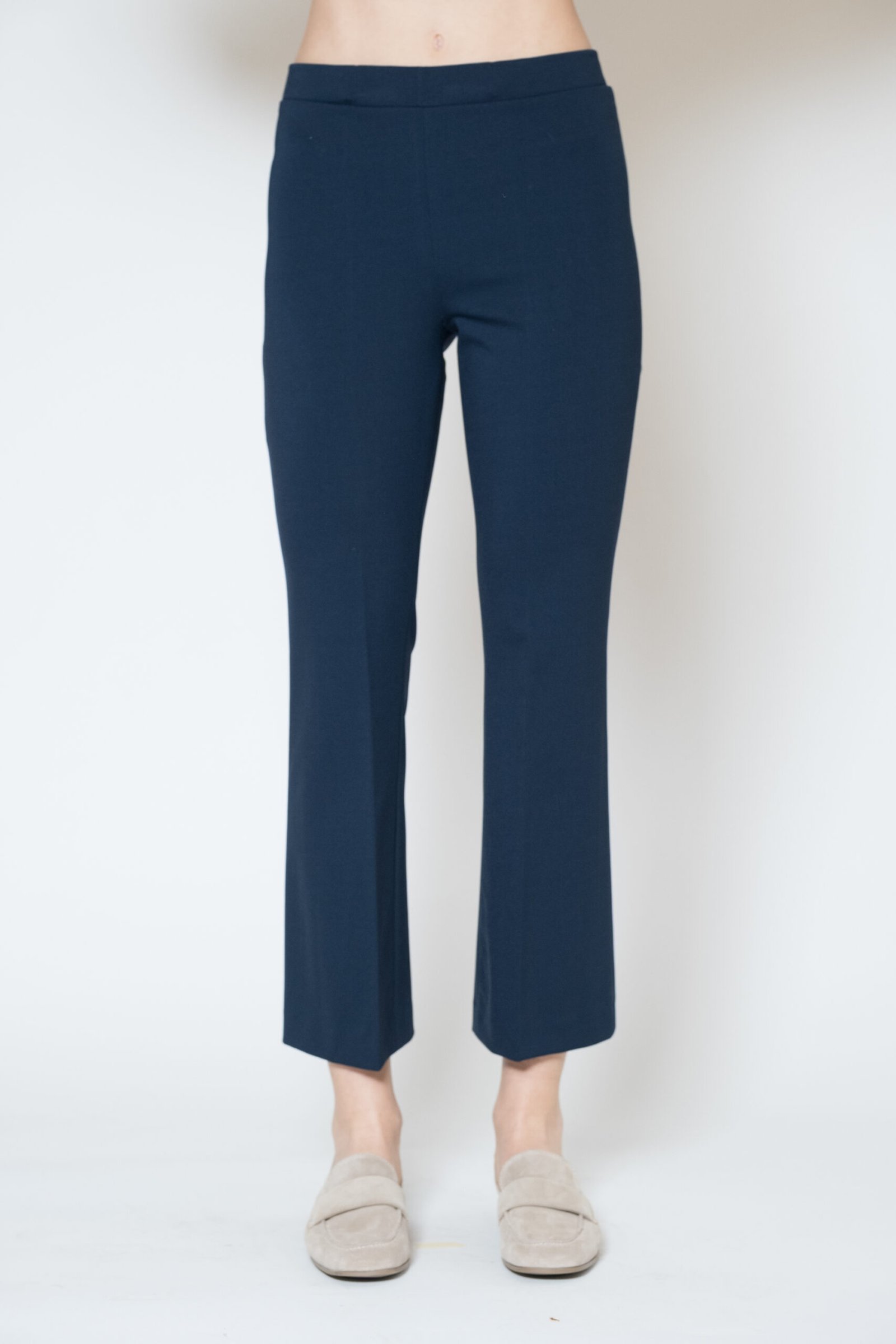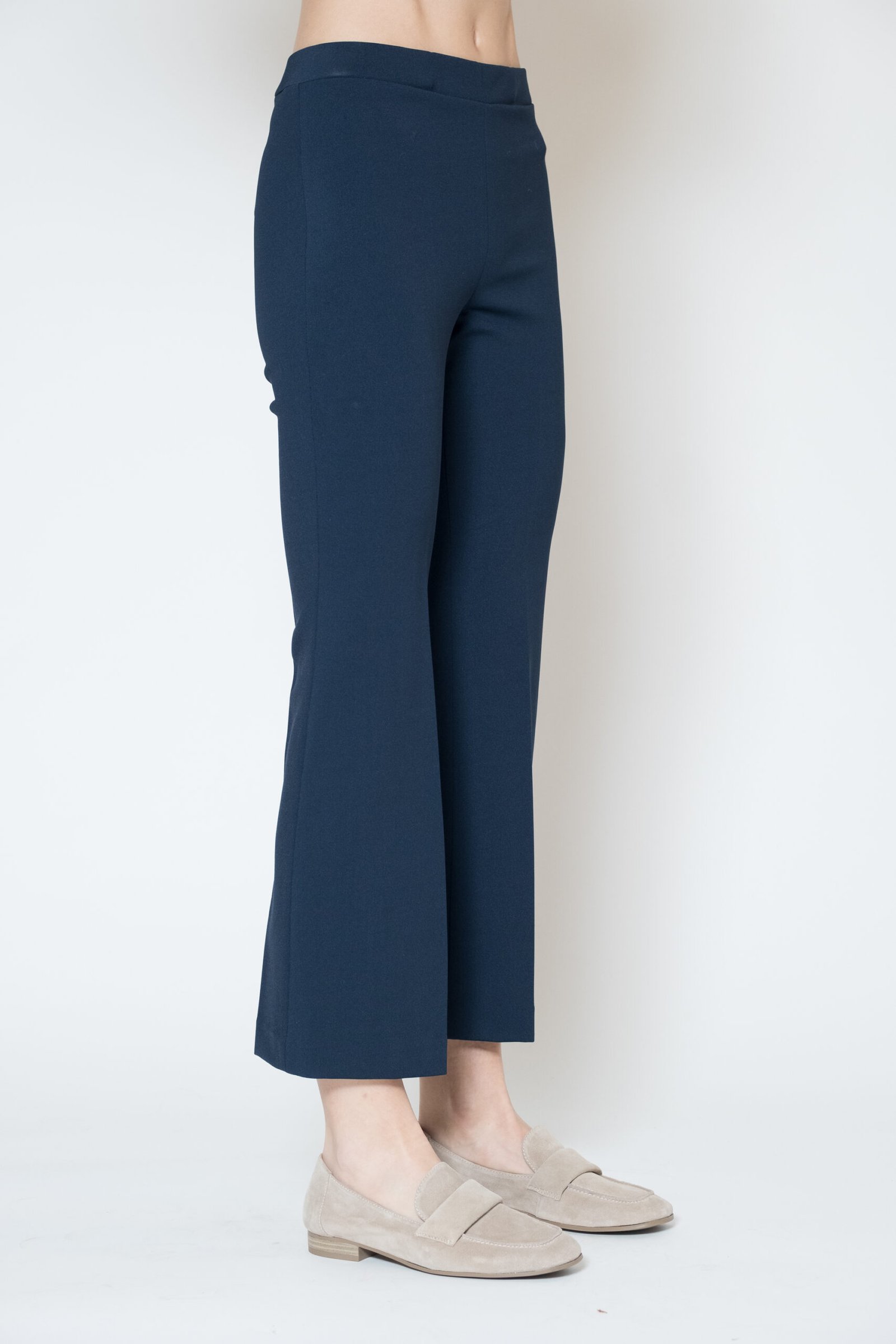 Pantaloni PAMELA trombetta senza applicazioni fiori in tinta, punto milano