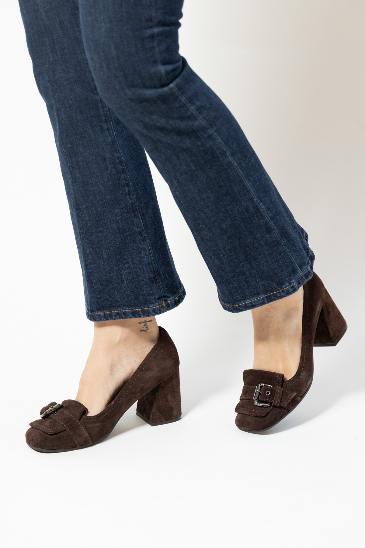 Décolleté nabuk con fibbia