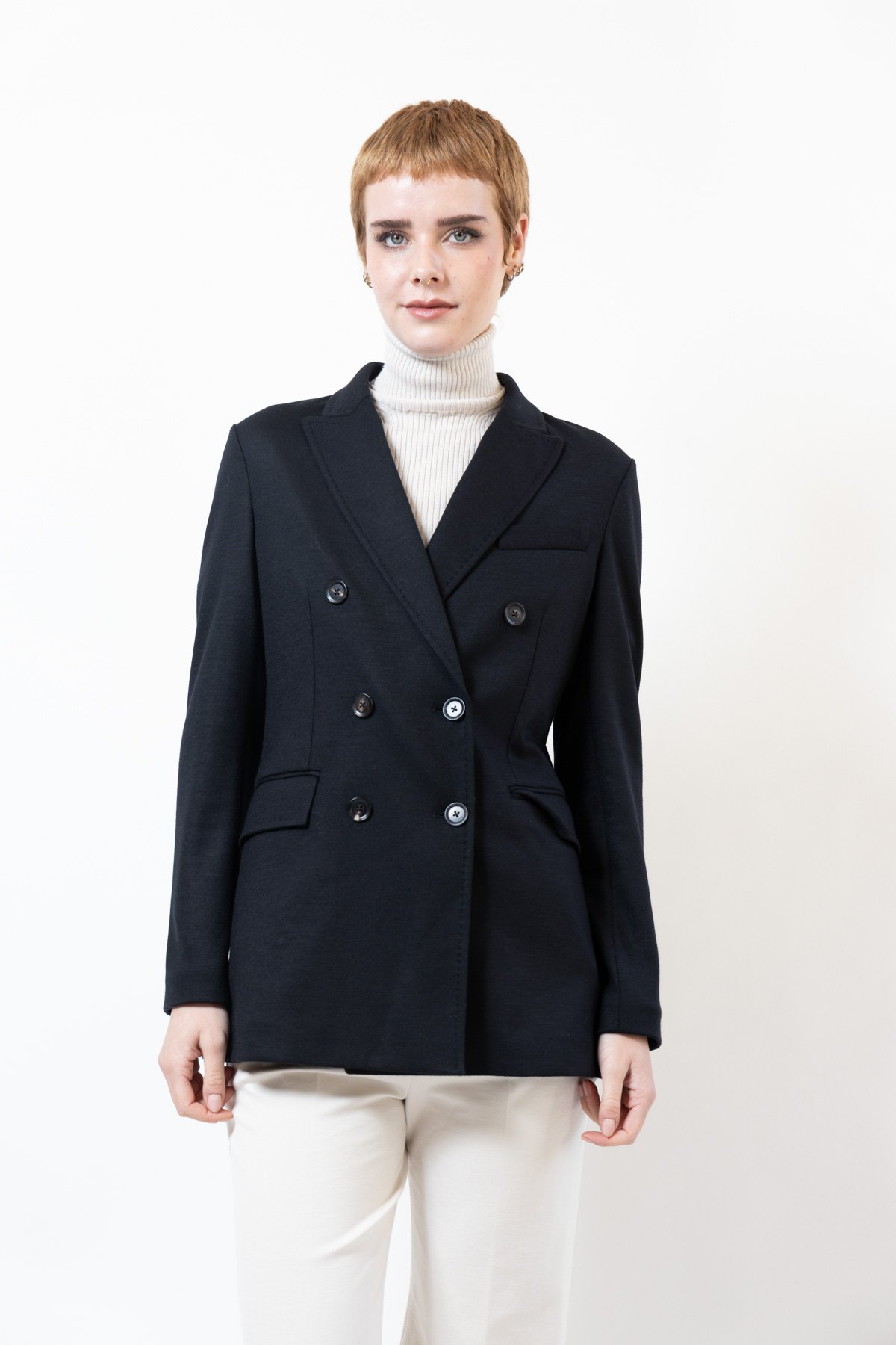 Giacca doppiopetto in jersey , lana cachemire