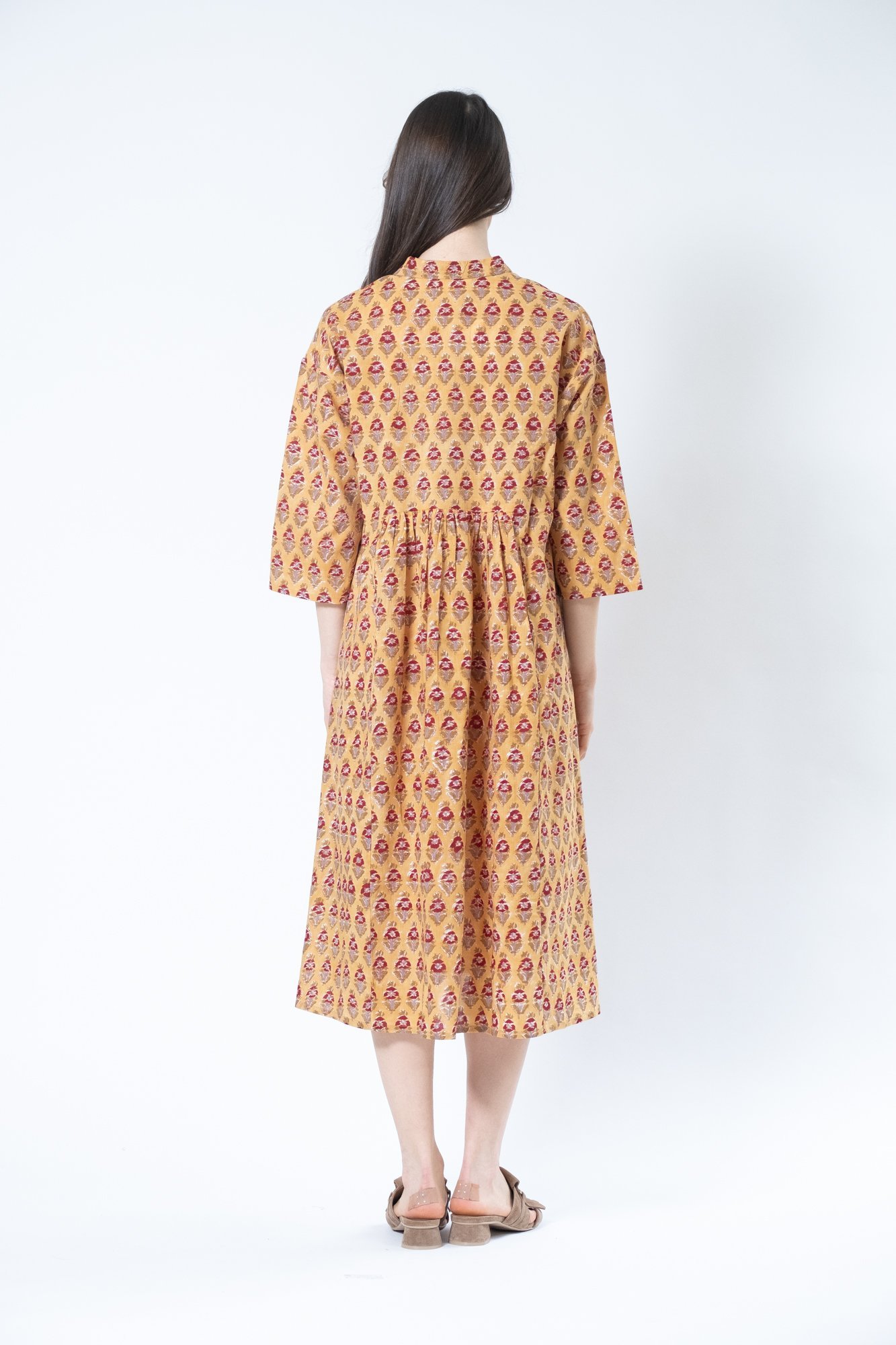 Abito JADE con maniche a 3/4 e collo a camicia, bottoni a metà altezza ,stampa fiorellini